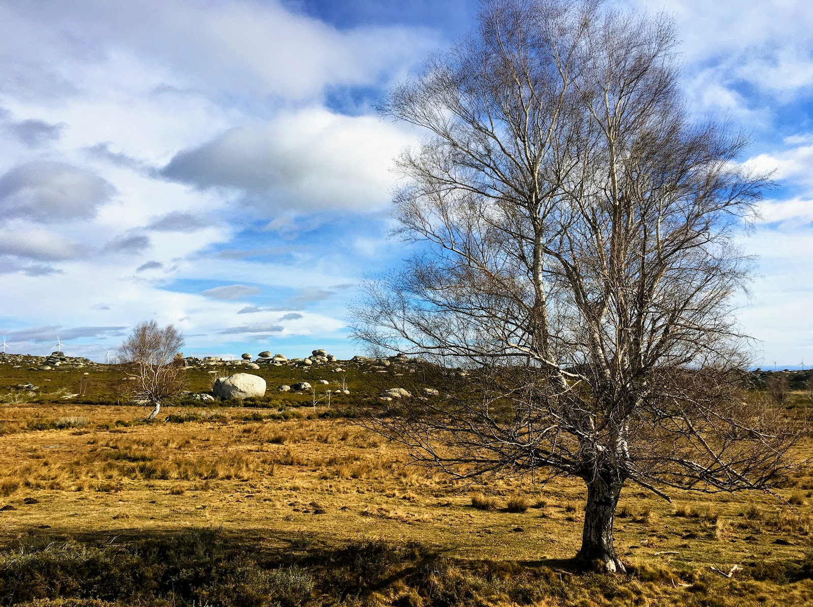 À descoberta dos caminhos da Serra de Montesinho, e acima da aldeia que dá nome ao parque que, não fosse pela presença de eólicas e em grande quantidade, seria um local perfeito para caminhar. Na verdade, o objectivo, dado o tempo disponível para a actividade, era atingir o topo da serra, o ponto mais alto do parque, a Lombada Grande - Malhada Coba como dizem os espanhóis(1485m). As temperaturas eram já de si muito frias(-10, na noite anteior), mas o vento nas trepadelas dava cabo de tudo. Na verdade, o ponto mais alto é apenas um prolongamento da Sierra de La Parada, que apenas à distância de um saltinho tem na Piedra de los Tres Obispos, um alto com 1522m. Toda esta região de altitudes maiores junto à ráia é muito agradável para caminhar dado os poucos declives e uma mistura muito simpática, entre serra granítica, bosques de bétulas e pinheiros primitivos, e bolsas de água, prados, lameiros, etc.